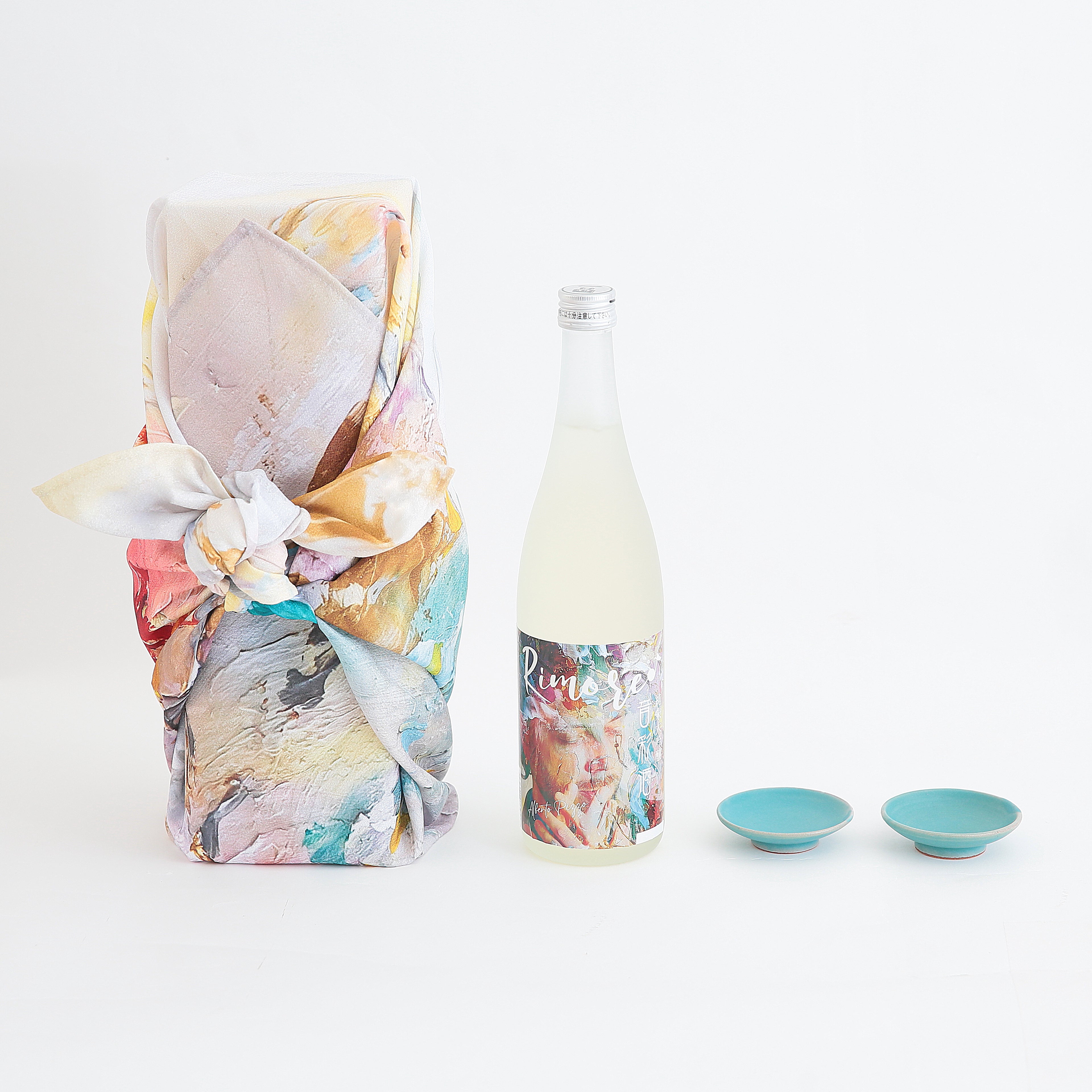 音彩酒のラベルと風呂敷デザインのアートワークを手掛ける。